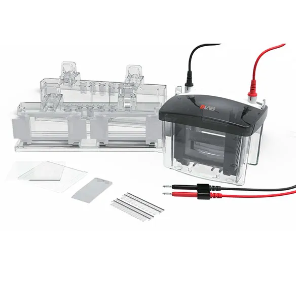 DL-Mini04 – камера для вертикального электрофореза небольшого количества образцов нуклеиновых кислот и белков. Подходит для использования четырех гелей размером 8.3×7.3 см одновременно.
