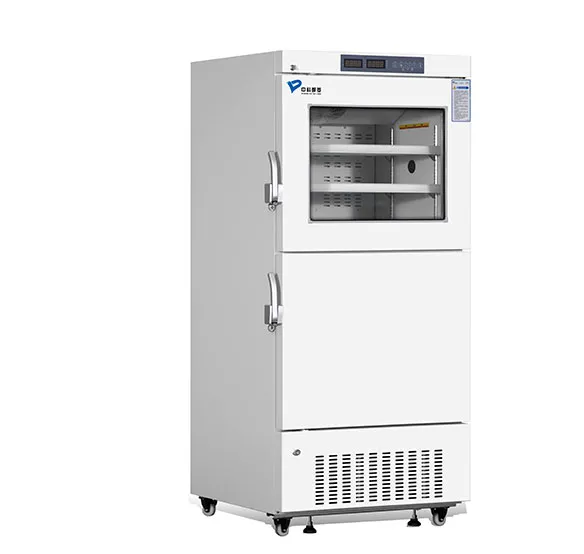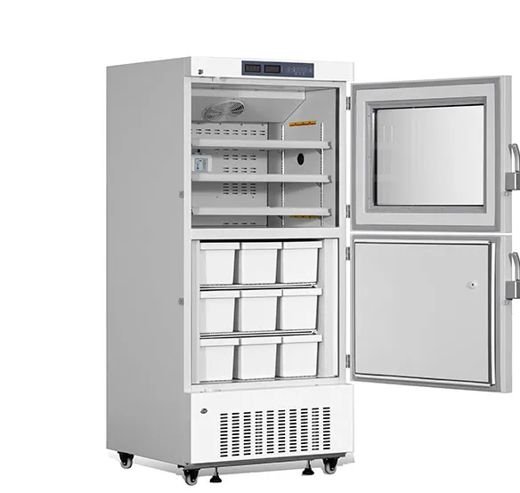 Комбинированный медицинский холодильник и морозильник MRF-25V528 (температурный диапазон холодильника 5 ± 3°С, температурный диапазон морозильной камеры -10 ~ -25°С) широко используется в лабораториях. Изделие имеет двойную камеру, двойной дисплей, двойную систему управления, два комплекта индивидуальных компрессоров и холодильной установки. Температура в обеих камерах независима друг от друга.