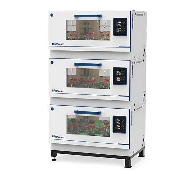 Biostream C7 успешно сочетает в себе гибкость, удобство в эксплуатации и безопасность с оптимальным использованием пространства. Благодаря модульной конструкции и открывающейся вниз дверце Biostream C7 может быть как единым блоком для использования на лабораторном столе или под ним, так и работать как часть многоуровневой, штабелируемой системы. Систему можно расширить до двух- или трех уровней.