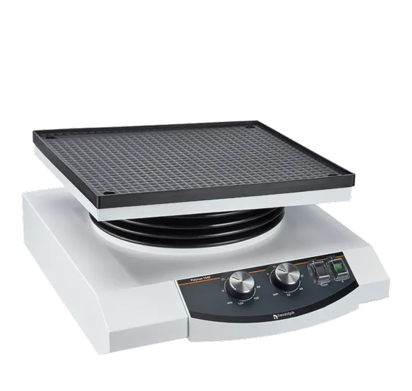 Модель Rotamax 1040 — шейкер средних размеров с максимальной нагрузкой до 5 кг. Доступны две модификации с углом наклона 5° для деликатного встряхивания и 10° для сильного перемешивания. Данный шейкер может использоваться для различного типа емкостей от чашек Петри до бутылей и конических колб. Аналоговый таймер позволяет задавать время встряхивания в диапазоне от 1 до 120 минут, по завершении которого прибор остановится и подаст звуковой сигнал. Эта модель подходит для интеграции в модульный инкубатор, который рекомендуется в тех случаях, когда необходимо нагревать образцы в диапазоне температур от комнатной до 65 °С.