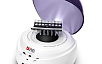Микроцентрифуга поставляется с двумя сменными роторами для разных пробирок. Роторы заменяются легко и быстро, без применения специальных инструментов. Для безопасности предусмотрена двойная блокировка крышки. Работает тихо, уровень шума не превышает 45 дБ.