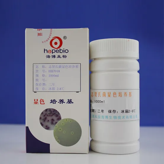 Shigella Chromogenic Medium ‒ используется для выявления шигеллы в образцах еды и стуле пациентов. После культивирования в течение 24 часов шигеллы белые или бесцветные, некоторые Shigella sonnei имеют синий центр, Escherichia coli и колиформные бактерии зеленые или желтые, сальмонеллы желтые или бесцветные с черным центром, другие бактерии сине-зеленые или желтые. Proteus и синегнойная палочка не растут.
