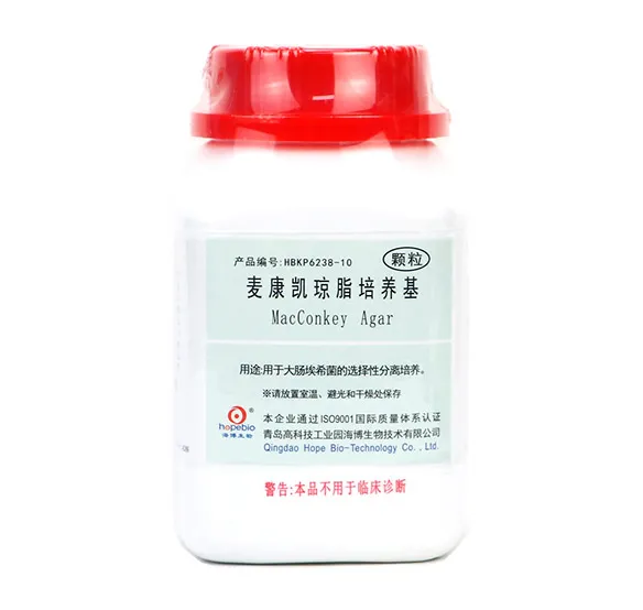 MacConkey Agar ‒ используется для селективного выделения и идентификации колиформ и кишечных патогенов из фекалий, мочи, сточных вод и пищевых продуктов. Соли желчных кислот и кристаллический фиолетовый подавляют рост грамположительных бактерий. Нейтральный красный позволяет отличать бактерии, ферментирующие лактозу, по изменению цвета колоний.