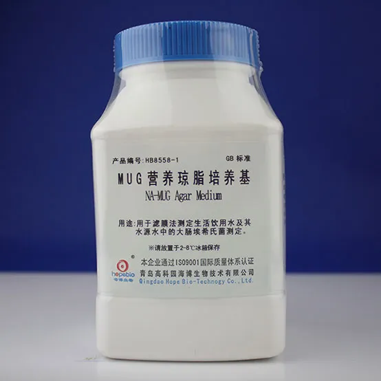 MUG Nutrient Agar (NA-MUG) ‒ используется для выявления кишечной палочки в питьевой воде и водных ресурсах методом мембранной фильтрации.