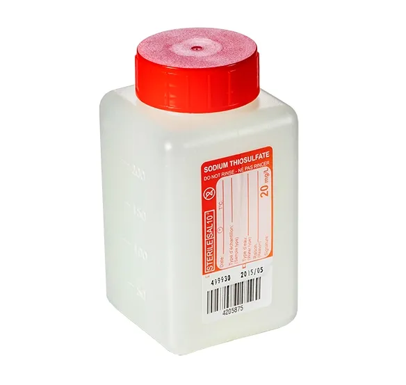 На каждой этикетке указаны номер партии, срок действия ионизации и количество тиосульфата натрия. Тиосульфат натрия, содержащийся в каждой бутыли, ингибирует действие хлора, брома и озона, которые могут присутствовать в воде во время отбора пробы. Флору образца можно сразу же перенести на питательную среду.