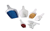 Универсальные мерные совки предназначены для определения количества и пересыпания порошков и гранулированных материалов. Для того, чтобы отмерить точный объём, необходимо заполнить совок с верхом, после чего удалить излишки так, чтобы поверхность порошка находилась вровень с верхними кромками совка.