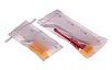 - Пакеты с губкой на 450 мл размером 114×229 мм с толщиной стенки 63 мкм имеют поле для надписи, защищённый зажим с двумя круглыми проволоками, 400 шт/упаковка. Пакеты имеют вложения двух видов: с сухой губкой и с сухой губкой и перчатками. Стерилизация гамма-излучением. Срок хранения 5 лет.