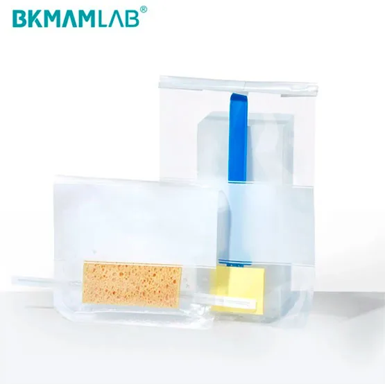 Пакеты с губкой предназначены для взятия смывов с поверхностей и выпускаются в различных форматах: с держателем и без, с буфером и без, это позволяет подобрать подходящий формат для целей конкретной лаборатории.